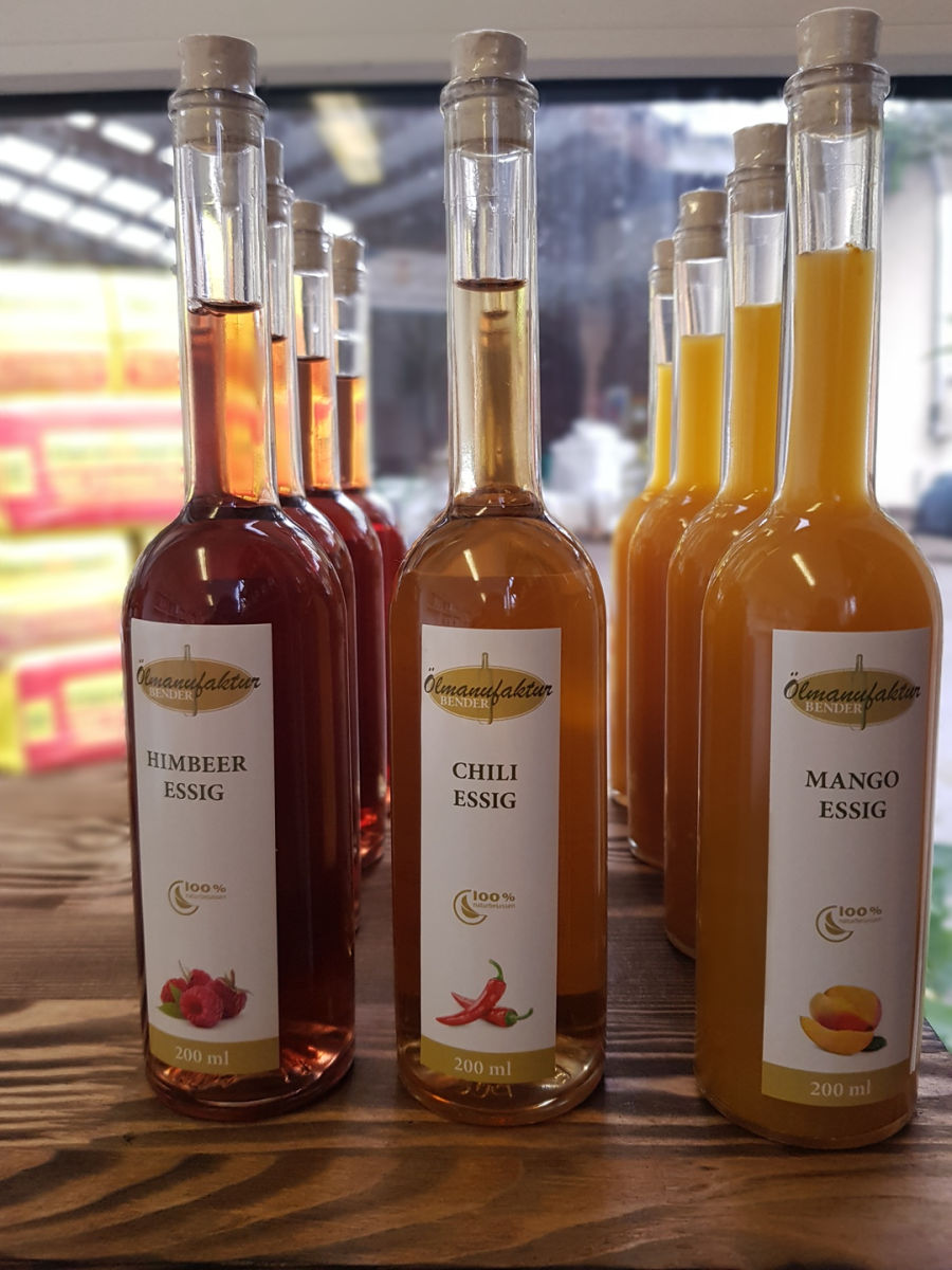 Von der familiengeführten Ölmanufaktur Bender aus Ubstadt-Weiher, erhalten Sie in unserer Regiobox, eine tolle Auswahl von verschiedenen Ölen, Essig sowie Pesto.